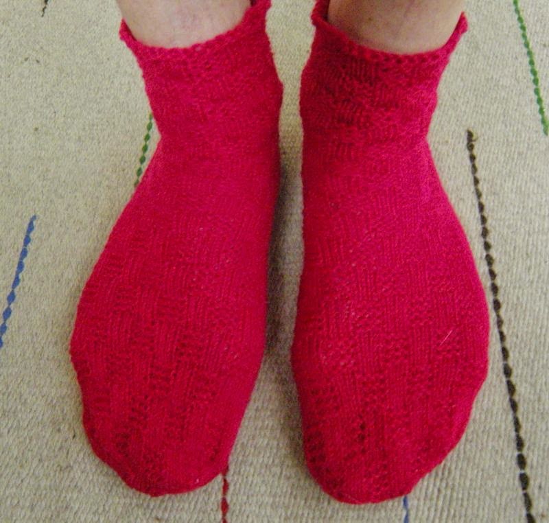 Viikko siinä aina vierähtää kun jotain keskinkertaista valmistuu. Onhan nämä sukat jo pari päivää olleet valmiit mutta on niin pilvisiä päiviä ollut myös ettei ole kuvaus ulkonakaan oikein onnistunut. Aina ei viitsi sisällä yrittää kun niistä tulee helposti liian keltaisia. Päivänvalo paras valo.