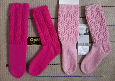 Kauniit sukat! Tuossa suunnittelemisessa menee kyllä aikaa. Vaaleanpunaiset on minusta kauniimmat.
